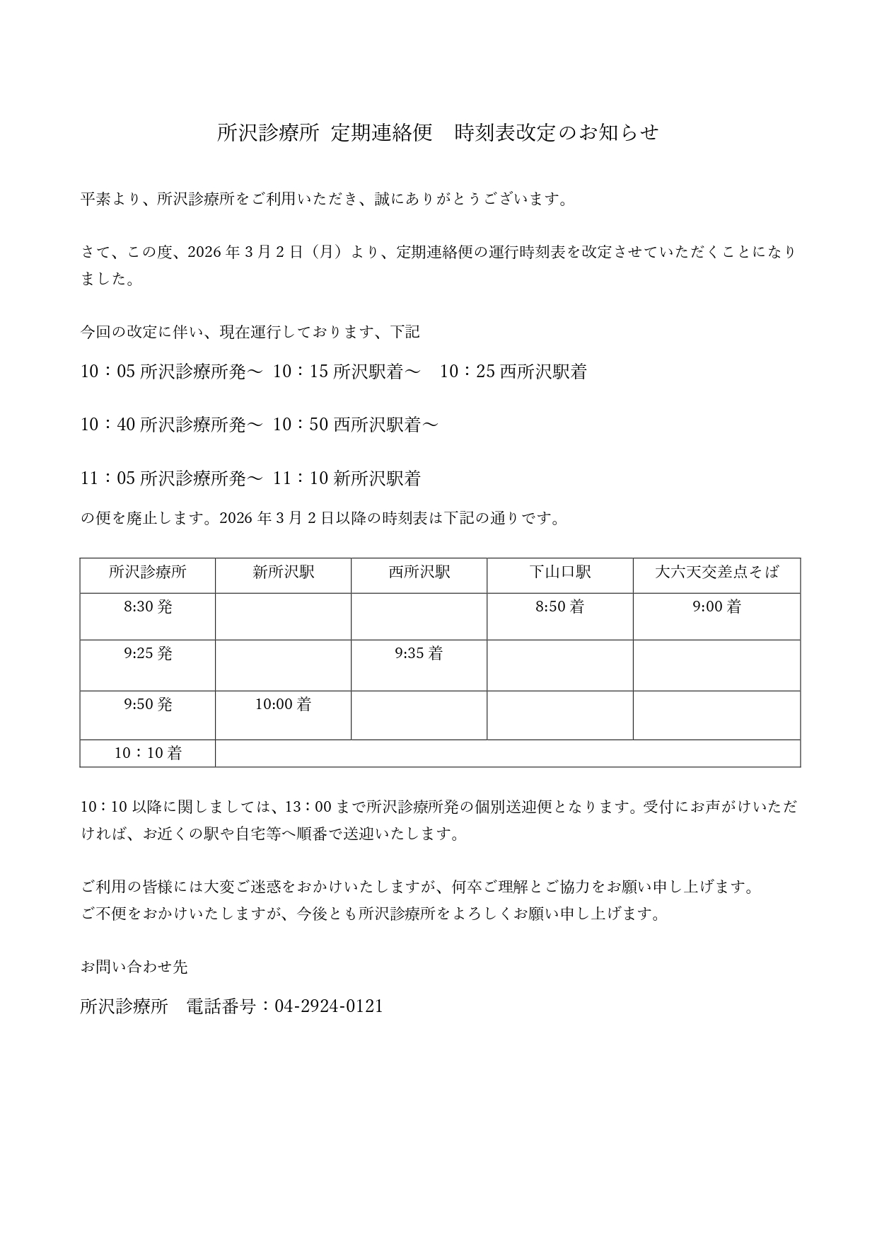 2026年3月より定期連絡便の時刻表を改定いたします。詳細は下記をご参照ください。